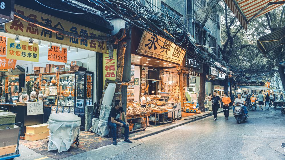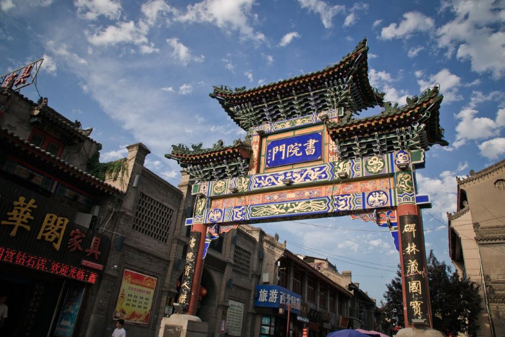 ▴ 书院门文化街,明、清两代陕西的学府“关中书院”就位于这条街上。古色古色的街道旁,处处都是字画店铺和经营文房四宝的小店。