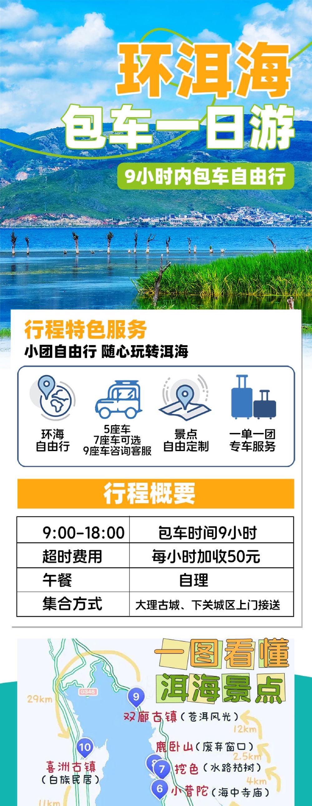 环洱海包车5/7/9座车自由行一日游【景点自由定制专车服务】【9小时内包车自由行,一单一团专车服务】