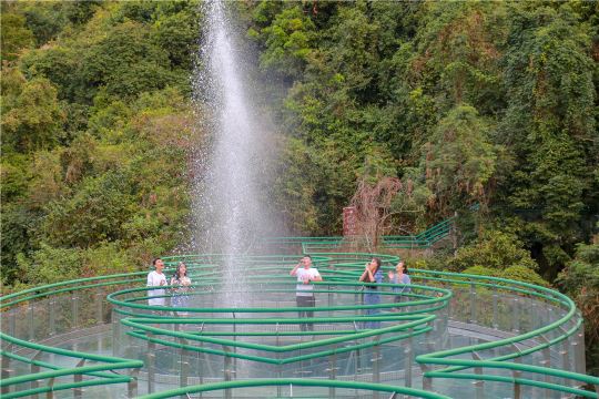 热带风暴情景体验馆位于景区雨林苗寨核心区,占地面积7000平方米,总投资2000万元,耗时近一年打造完成,可同时容纳500人。海南属于热带海洋性季风气候地区,每年都有大大小小的台风光顾,世代生活在这里的黎族苗族同胞情同手足,共同抗击台风的故事不胜枚举。但是,从艺术和文化的角度去挖掘“海南故事”,让游客身临其境地感受海岛风暴的舞台剧,目前在海南还没有。基于此,槟榔谷管理团队和专家学者共同研讨建设体验馆,从可行性方案、建设规划、故事蓝本到场馆施工建设以及科技元素融合的每个阶段,都凝聚了无数心血和智慧。