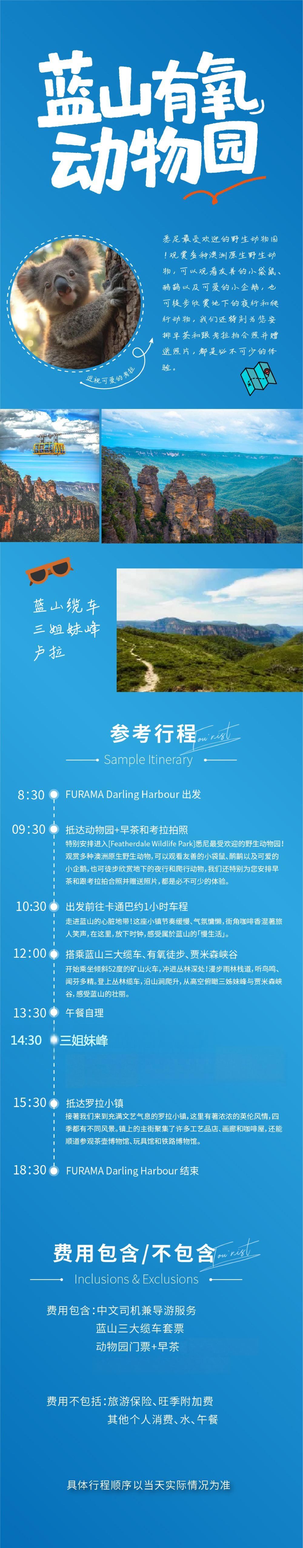 网红路线!澳大利亚悉尼蓝山有氧+动物园一日游【蓝山缆车【优质小团,专业司导沿途讲解】