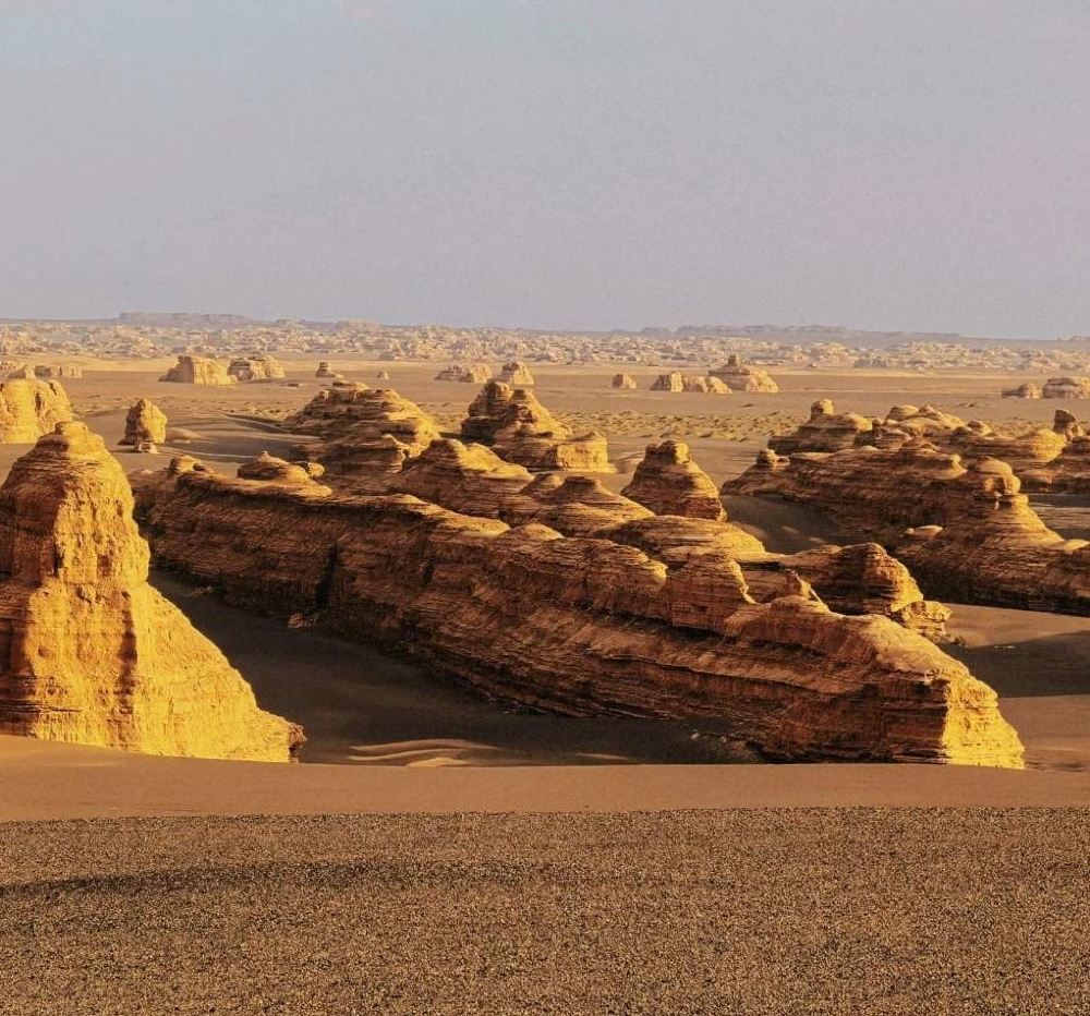 ▲ 踏入“魔鬼城”,时间仿佛被按下快进键。千万年风蚀的鬼斧神工,塑造出规模宏大的舰队出海、孔雀玉立、狮身人面……奇峰林立,姿态万千,犹如外星舰队降临地球。