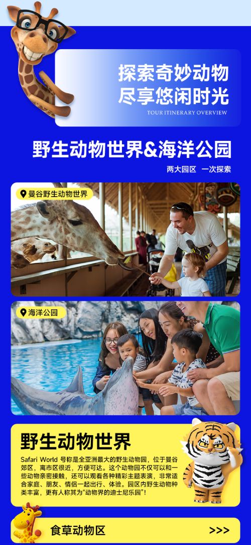 曼谷野生动物世界一日游【限时特惠专车游|中英服务|可选午餐】【两大园区一次探索,家庭亲子/闺蜜好友/情侣度假优选景点,近距离观赏奇妙的动物世界】