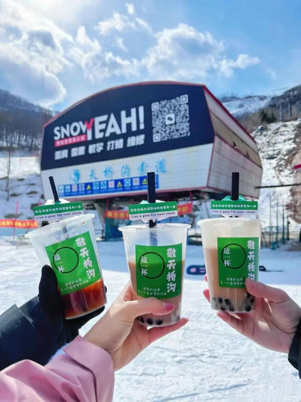 ▲ 山顶咖啡屋海拔1100米,木屋造型,是滑雪爱好者小憩的好地方,也是拍照俯瞰整个 雪场的打卡地,