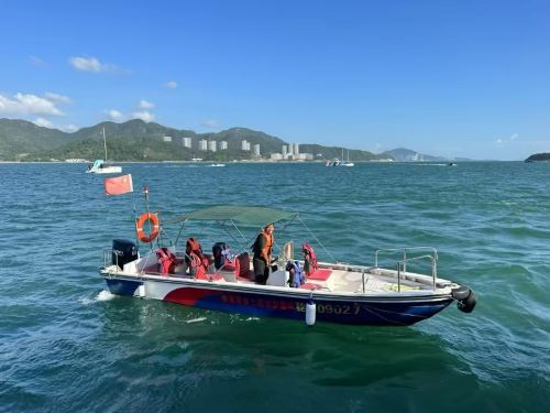 ▲ 45尺派对游艇“双鱼座”--荷载10人 推荐玩法:可自带酒水食品;浮潜游泳鱼竿鱼饵体验海钓自驾游艇海上滑滑梯海上魔毯海上泳池 其他项目可选(费用不包含) 摩托艇400半小时700一小时 海上飞伞280/人 海上飞人280/人 出海1小时观光路线: 较场尾码头出发~东家湾~桔钓沙~大亚湾核电站~返程 出海2小时玩水路线: 较场尾码头出发~东家湾~桔钓沙~大亚湾核电站~东山珍珠岛附近抛锚,游泳,滑梯,魔毯~返程