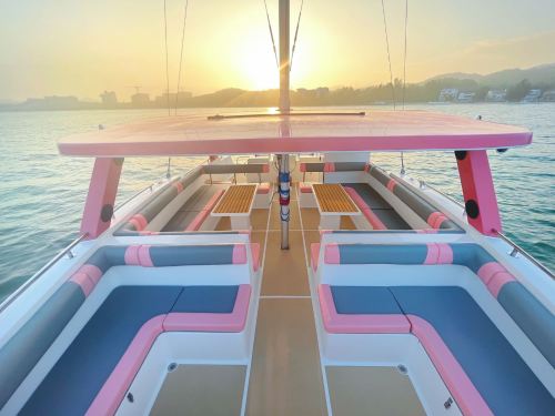 ▲ 45尺派对游艇“双鱼座”-船尾的阳光甲板甲板可以支起鱼竿闲坐垂钓,拥有3米高度的跳水台 可以穿上泳衣体验纵身一跃的快感。搭配滑梯泳池,小朋友大人都能安全无忧的畅快玩水