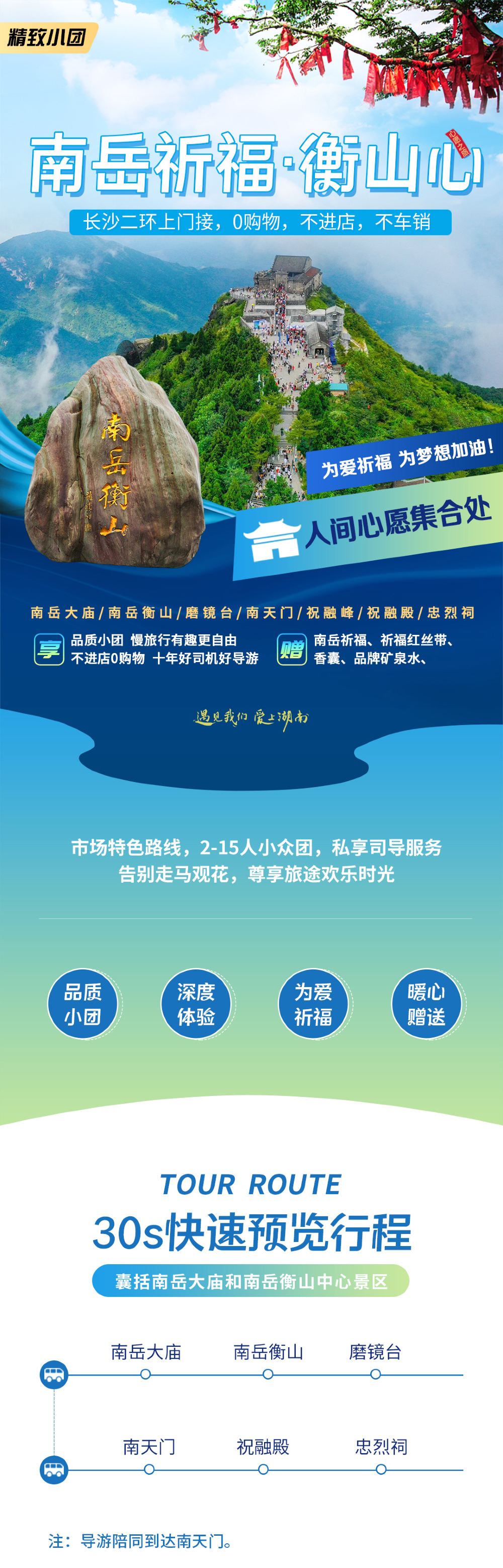 衡阳南岳大庙+南岳衡山风景名胜区+南天门一日活动【15人小团】【[行程特色]15人小团,二环内上门接。,天天发班,1人也可跟团。赠送祈福香囊,祈福丝带。】