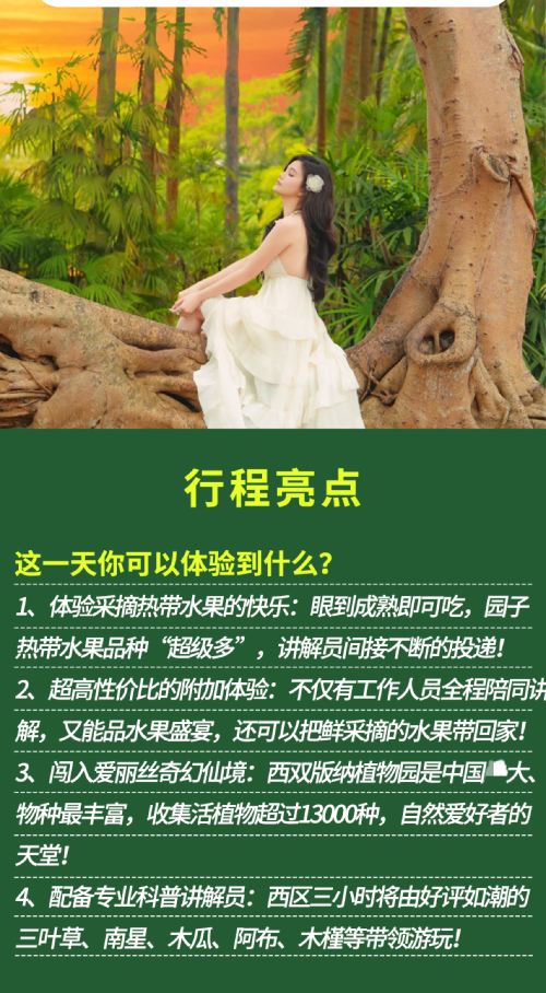 喃哈热带水果采摘园+中科院西双版纳植物园精品小团【[新鲜现摘先吃]体验采摘热带水果的快乐,眼到成熟即可吃,园子热带水果品种“超级多”,可吃到撑!】
