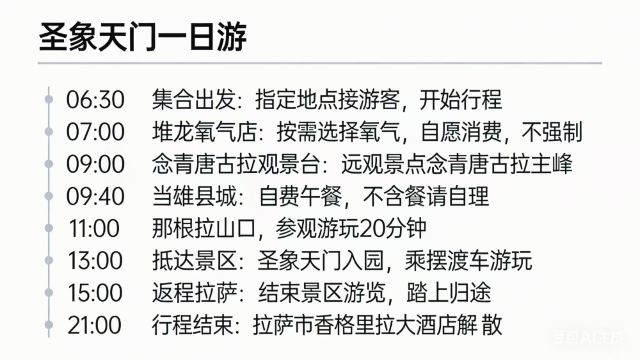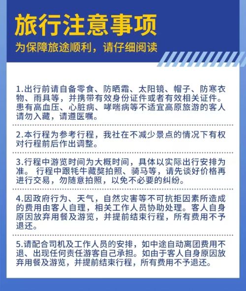 不可控须知:进入冬季后,景区天气不稳定。我社一般会提前一天晚上询问景区是否下雪,如若晚间已下雪将执行退款或改期操作(截止出行前一天晚上22:00),但不排除凌晨下雪的可能,因此无法保证次日可正常入园参观。如若出团路上遇到大雪,交通管制未能进入景区,根据当地政策和法规,只退还未产生景区门票或观光车费用【景区已实行冬游免票政策只含摆渡车20】往返拉萨车费将扣除。下单前请关注出团日期的天气预报。