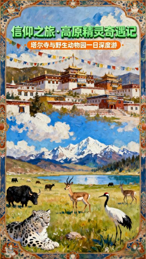 西宁+塔尔寺+青藏高原野生动物园1日-真纯玩|无套路|服务好【私密/自由/猎新/慢节奏,早晨出发时间晚,景区游览时间充足,旅途行程自由,给您一天深度休闲体验之旅。】