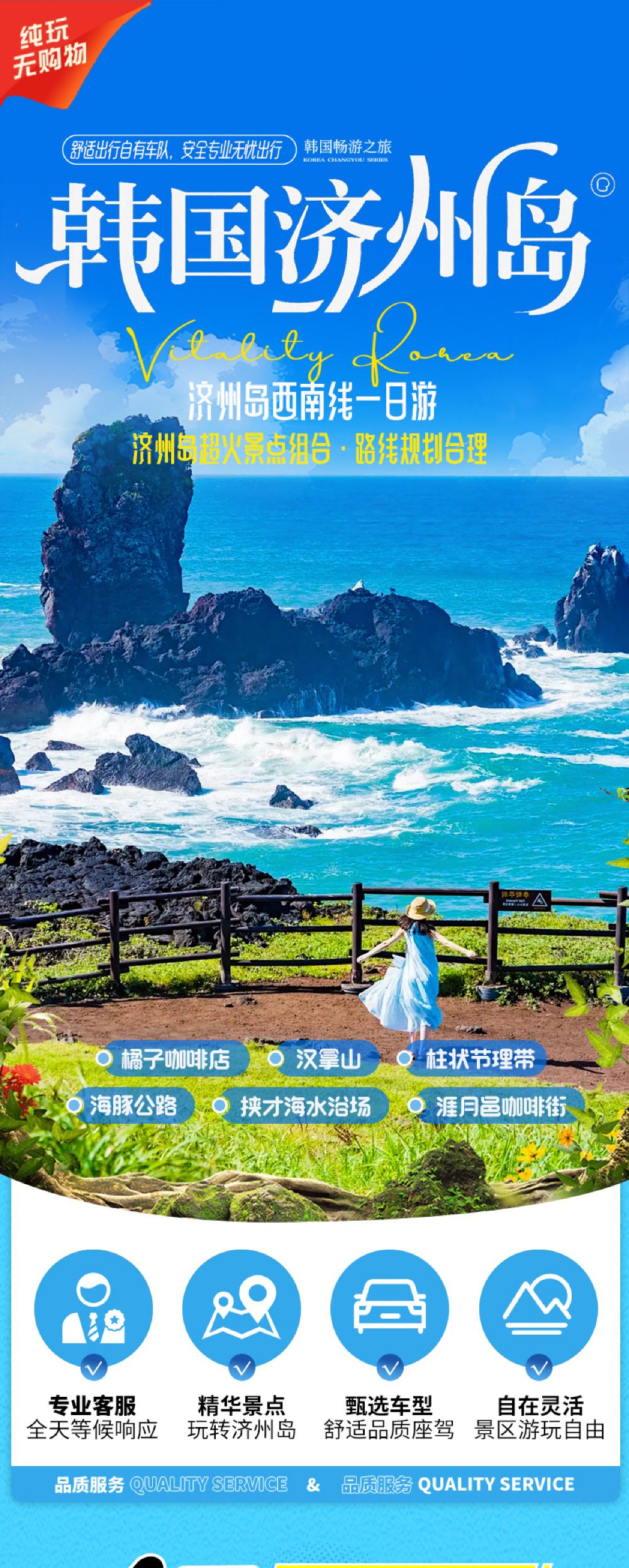 韩国济州岛西南线一日游【汉拿山+海豚公路+柱状节理带+狭才】【无购物纯玩+专业双语司导+经典景点一网打尽】