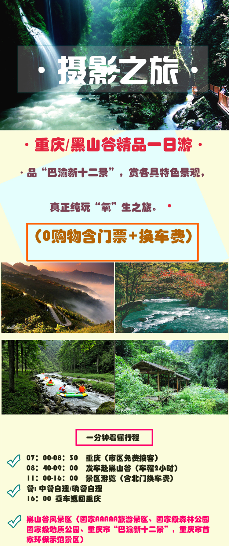 重庆黑山谷一日游【市区接驳丨纯玩丨含门票+中转车】