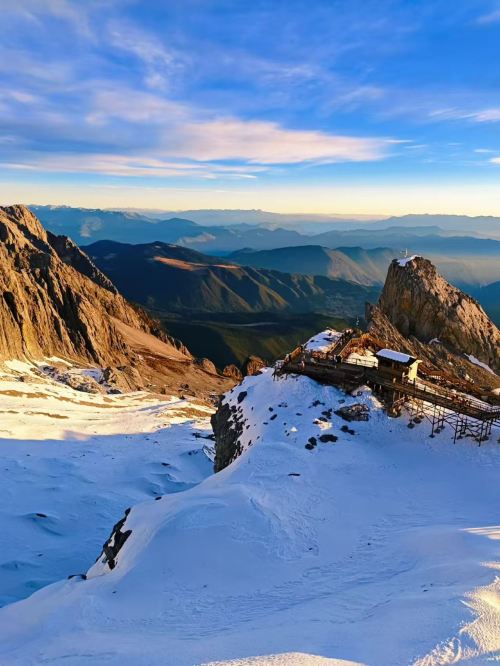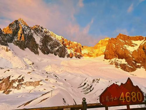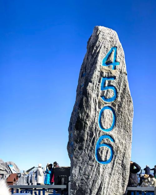 ▲ 冰川公园处于云南丽江市区北面32公里,是玉龙雪山现代冰川的典型代表。乘坐大索道(自3356米-终4506米)20分钟左右到达玉龙雪山主峰扇子陡东北坡,出索道站就是冰川公园 ,从冰川公园步行栈道约30分钟到达4680米石碑网红打卡处。