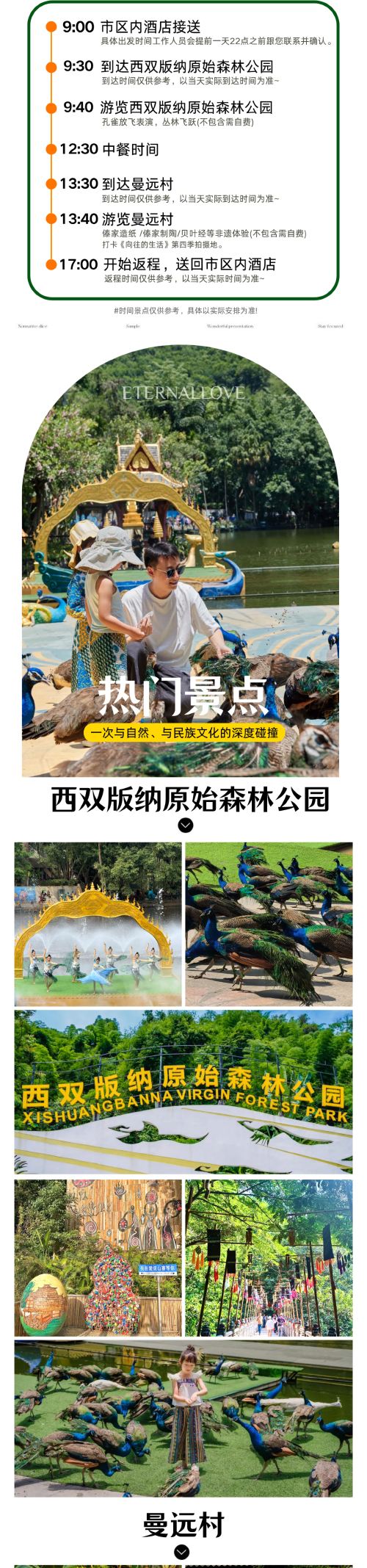 西双版纳原始森林公园+曼远村一日游【酒店接送+孔雀放飞】【1单1团,2人起订,以实际下单人数安排车型(5座轿车/7座商务车/9座商务车)等】