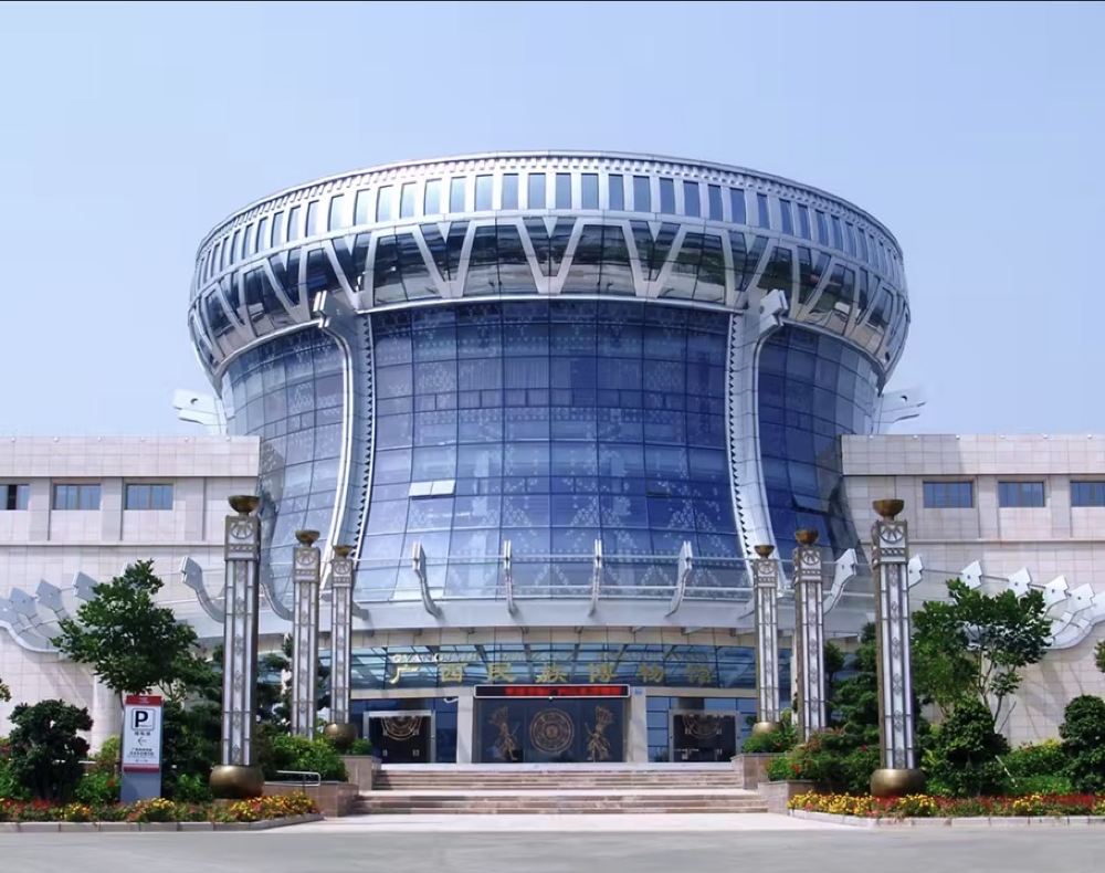 ▲ 广西民族博物馆位于中国广西南宁市青秀山风景区,是一座以收藏、研究和展示广西12个世居民族传统文化为主题的国家一级博物馆,兼具对东南亚民族文化的展示与研究功能。博物馆占地130亩,主楼建筑面积2.8万平方米,藏品超5万件(套),其中铜鼓收藏量为全球之尖,并设有8个固定陈列展览及露天展示园。