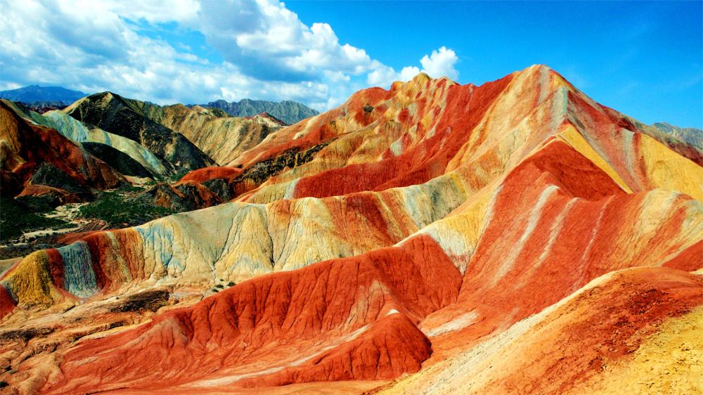 ▲ 七彩丹霞——"上帝打翻的调色盘",世界地质奇观,层理交错的彩丘如虹,日出日落时绚若明霞,堪称中国( ) 美丹霞地貌之一,摄影天堂!