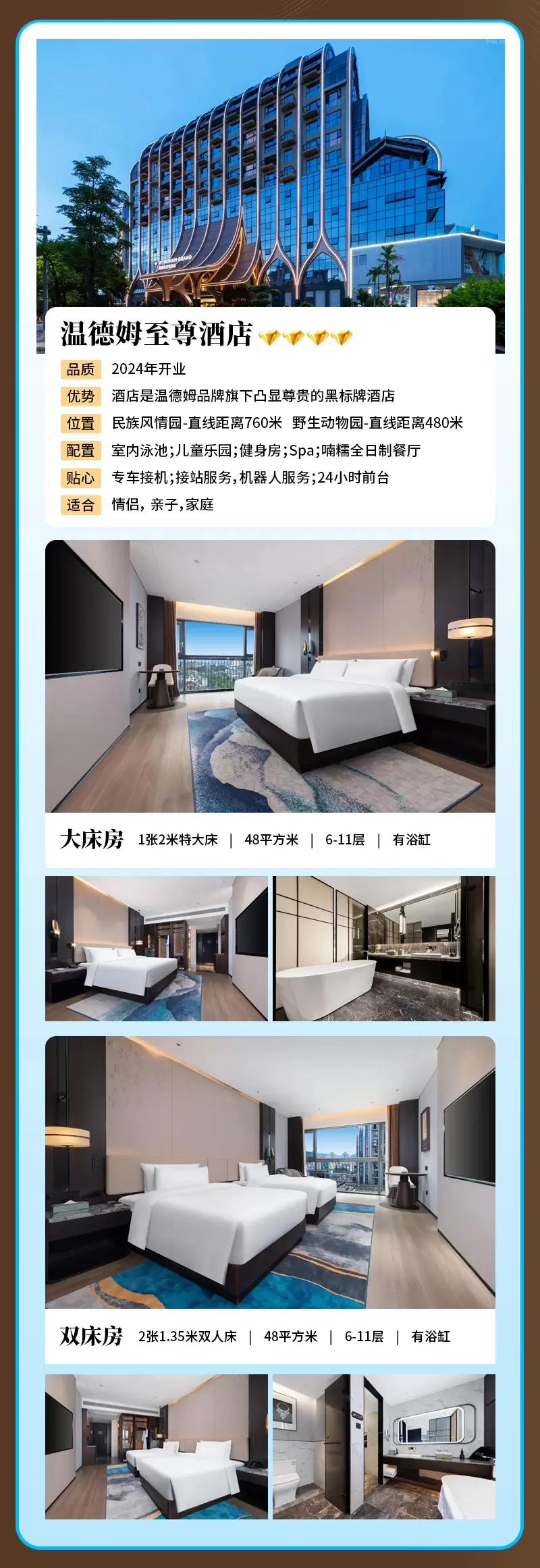 【酒店套餐】3天2晚温德姆至尊酒店+双人野象谷+原始森林公园双园门票+酒店早餐