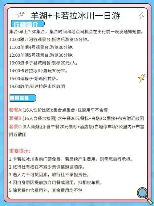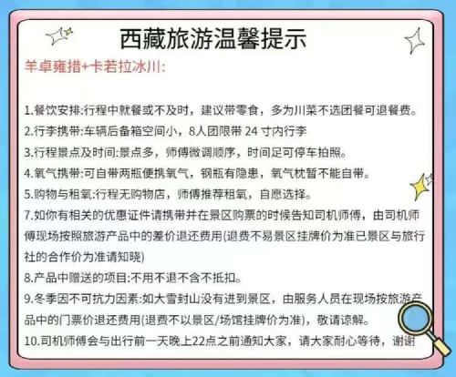 费用提示: 冬游西藏。羊湖免门票。会去五个观景台中两个。大概率是1号和3号(1号在山顶。2号在半山腰。234号都可以近距离接触湖面)卡若拉冰川免费,但是自行前往步梯匝道区域需额外支付50元/人 费用。该路段为景区管控路段费用由当地村民统一收取,敬请提前知悉~