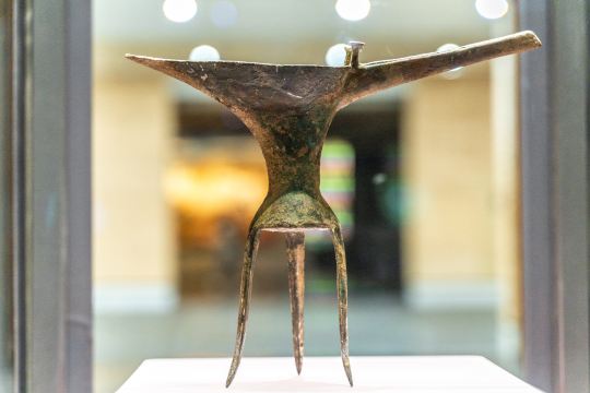 ▲ 二里头博物馆的乳钉纹青铜爵,是 “华夏第一爵”。它三足鼎立,流尾修长,腹部乳钉纹简洁大气,尽显夏代青铜工艺的初创之美。作为中国最早的青铜礼器之一,它不仅是酒器,更是夏代礼制与权力的象征,静静矗立在展柜中,诉说着中国青铜文明的开篇史诗。