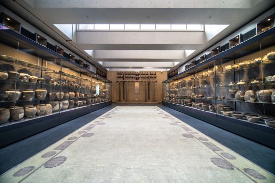 ▲ 二里头博物馆的文物长廊,两侧展柜如历史的 “时光格”。数千件夏代陶器、玉器、骨器有序陈列,从日常的陶爵、玉璋,到精美的绿松石龙形器,每一件都承载着夏代人的生活与信仰。长廊的尽头仿佛通向文明的源头,让人在移步换景中,读懂华夏文明的初始模样。