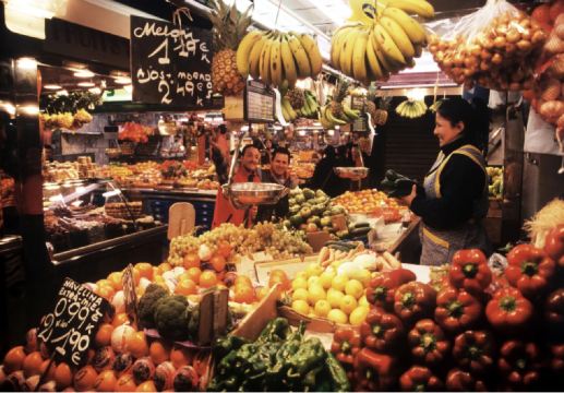 ▲ 波盖利亚市场是名副其实的“吃货天堂”,摊位上的新鲜的水果、蔬菜、火腿、海鲜、糖果等井然有序地排放着,各种色彩穿插错落、如同毕加索手中的调色板一般,无不泛着令人愉悦的光泽。摊主们热情地招徕着过往行人,伊比利亚火腿、奶酪和海鲜等摊位总是深受人们青睐的地方。