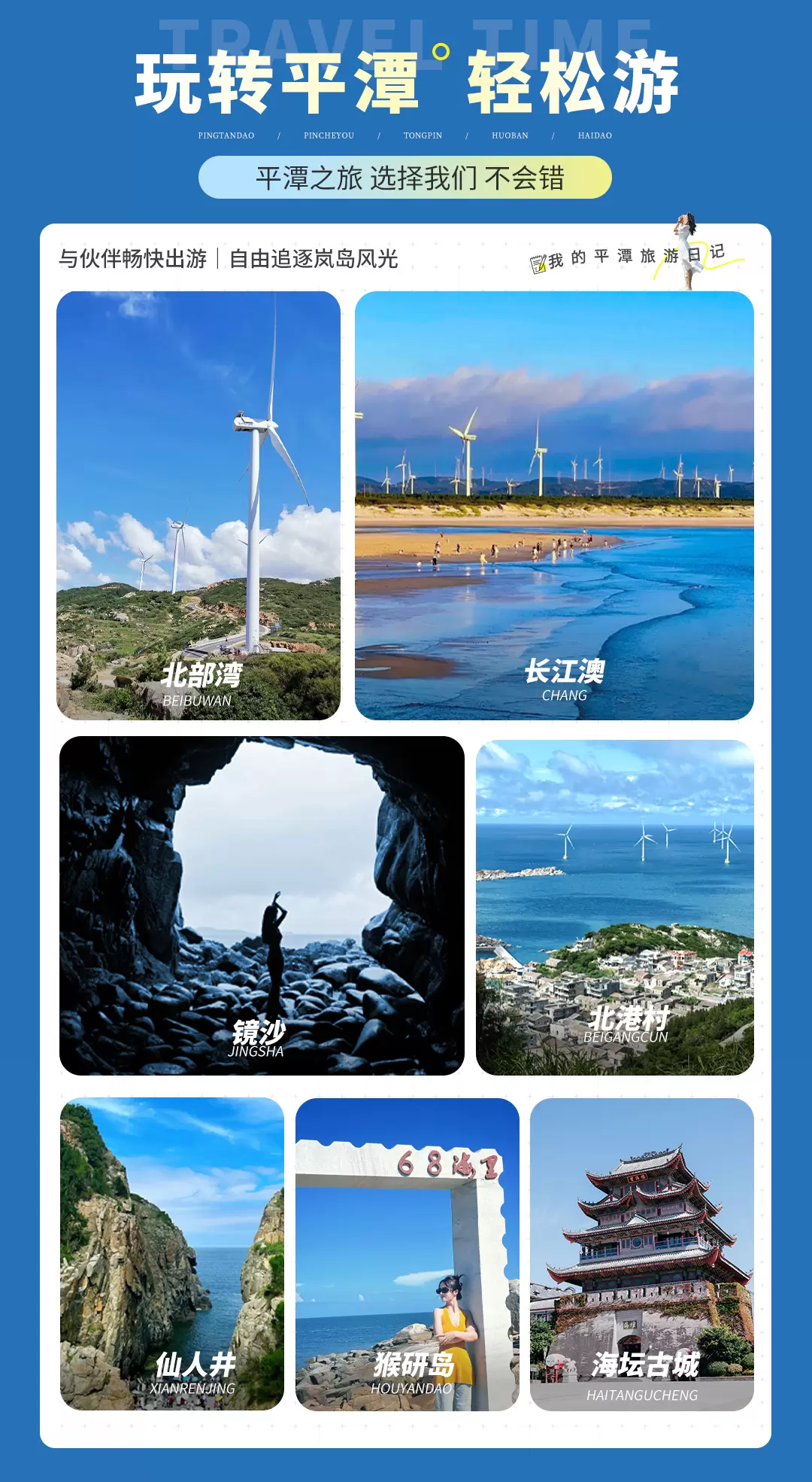 福州平潭岛+猴研岛+龙王头沙滩+海坛古城+坛南湾一日游【8人拼小团|南北线任选|上门接送|福州/平潭出发】