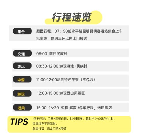3、导游:全程持证导游讲解;如人数少于 6(含)人司机兼职导游,师傅送达景区后,客人自由活动;