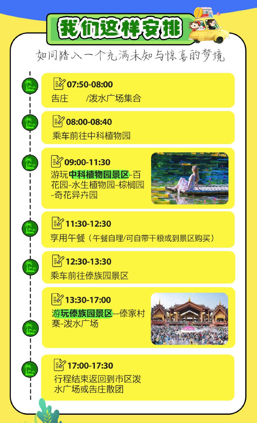 中科院热带植物园+傣族园一日尊享2+1陆地头等舱坐席真纯玩【【优质服务】升级2+1陆地头等舱豪华大巴车,宽敞舒适,超大空间,USB车载快充,双开门不拥挤】