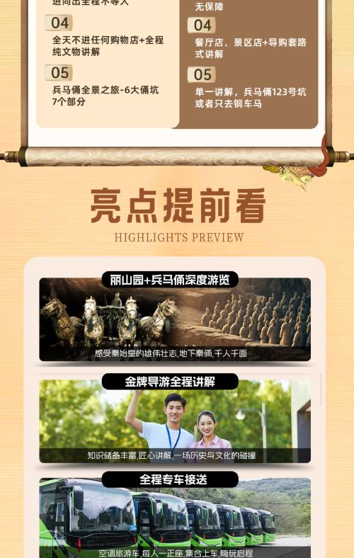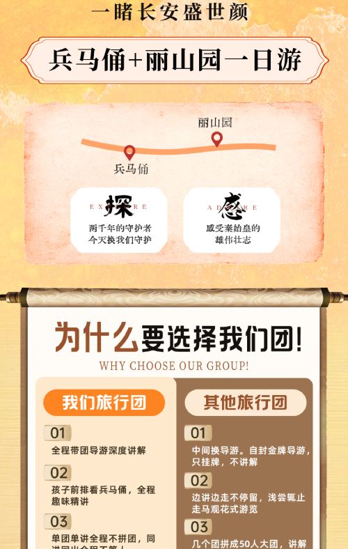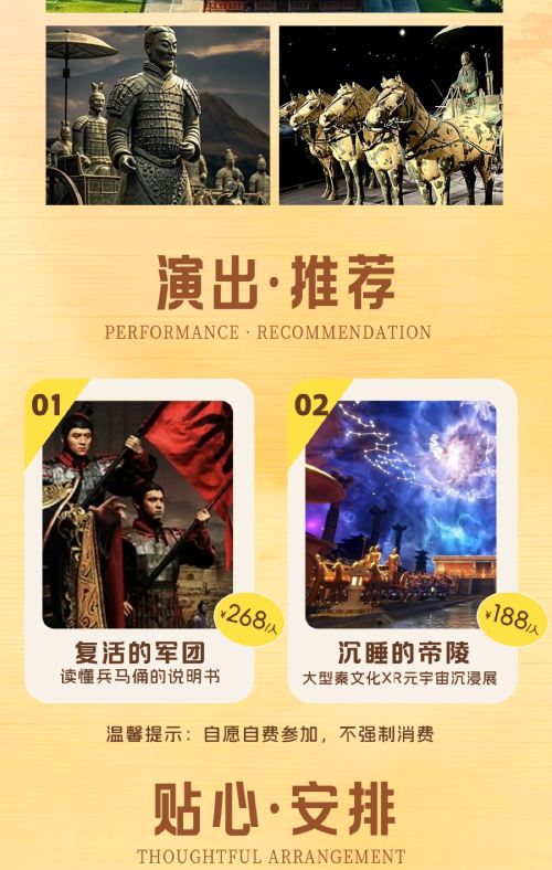 1、兵马俑、华清宫、长恨歌景区均采取实名制入园,下单时请务必预留实际出行人证件信息,出行当天必须携带身份证原件,及其他相关有效证件方可入园参观,因预留证件问题导致无法入园,本社不承担任何后果,敬请谅解!