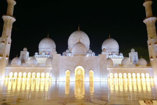 ▲ 谢赫扎耶德清真寺位于阿联酋首都阿布扎比,它为纪念阿联酋第一任总统谢赫扎耶德而建,历时13年,耗资55亿美元。清真寺以白色为主体,82个穹顶、超1000根立柱尽显宏伟。内部装饰畲华,使用55吨黄金,殿内汉白玉石壁用99种文字书写真主阿拉名字。主祈祷殿有世界樶大手工编织波斯地毯,还有从德国定制的施华洛世奇水晶吊灯。此外,4座107米高的宣礼塔十分瞩目。这座清真寺不仅是宗教圣地,也是艺术殿堂,融合多种文化风格,对公众开放,吸引着世界各地游客前来感受其独特魅力。