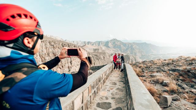 ▲ 在海拔超过1600米的崎岖山脉中,Jais Sky Tour带领勇敢的探险者穿越一条复杂的六条滑索路线,这些滑索的长度从仅337米到超过1公里不等。滑索让你获得非凡的鸟瞰视角,当你穿着特别设计的安全带飞行5公里穿过高耸的哈贾尔山脉时,这种安全带提供了最小的风阻,平均速度可达每小时60公里。