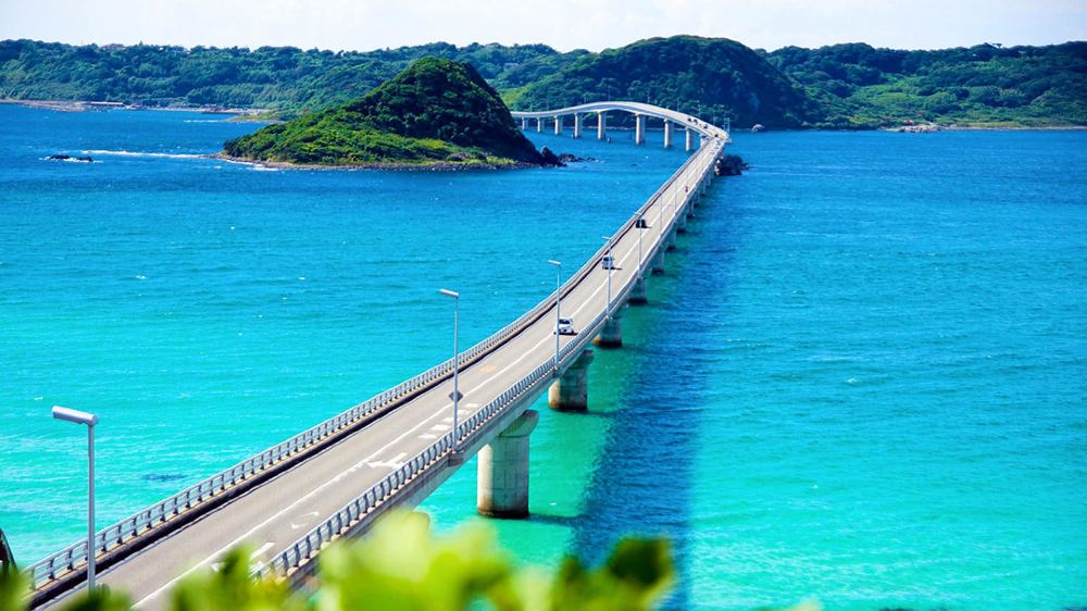 ▲ ▲【角岛大桥】角岛大桥位于山口县,是连接本州与离岛角岛的一座跨海大桥,全长约1,780米。桥身笔直延伸于碧蓝海面之上,风景如画上。由于无需收费,也成为自驾游和摄影爱好者的热门打卡地。站在桥头眺望,湛蓝海水与白色桥身相映成趣,如同走进明信片般的风景,是山口县代表性的观光地之一。