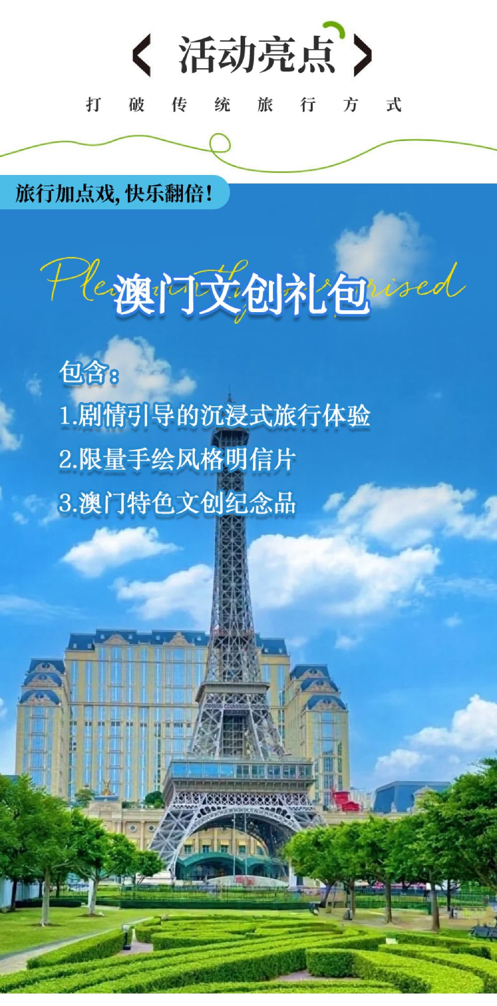 澳门全景一日游【纯玩送上网卡+文创礼包-茶餐厅跟团游】【文创礼包:有故事的旅行+手绘明信片+文创奖品】