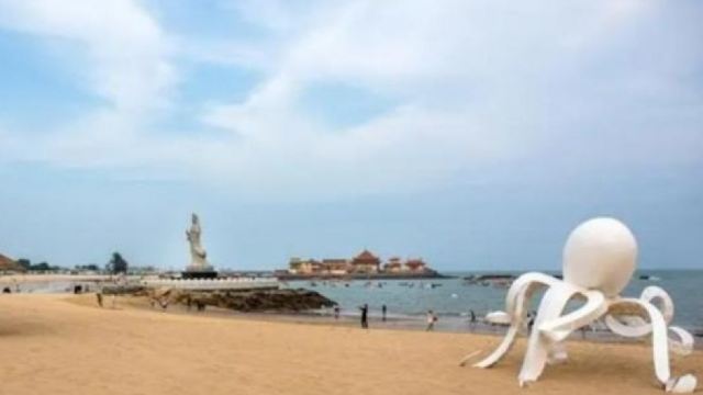 ▲ 【石狮十里黄金海岸】 一条10公里长的38米宽的水泥大道将她与石狮闹区联系起来。这里西北依宝盖山峰高控海,东南临台湾海峡水天一色。景区内有"观潮点帆宫屿湾,粼粼碧波白沙滩,莽莽林原新沙堤,怪石嶙峋观音山"。