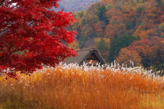▲ 在白川乡,一年四季都有不同的风景,让您感受到城市无法体验的清新舒适。春季樱花盛开,夏季新鲜的绿色新芽和郁郁葱葱的山脉相映,秋季五彩缤纷,冬季则拥有纯白色的梦幻风景。