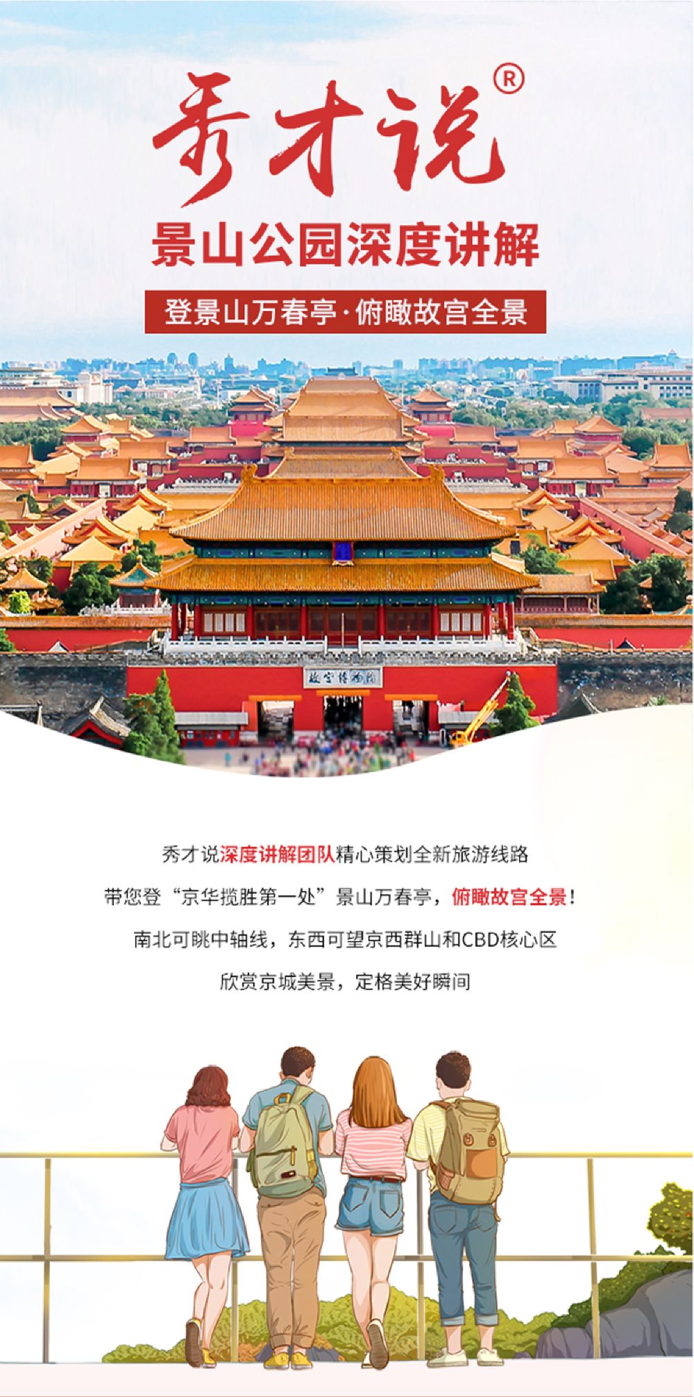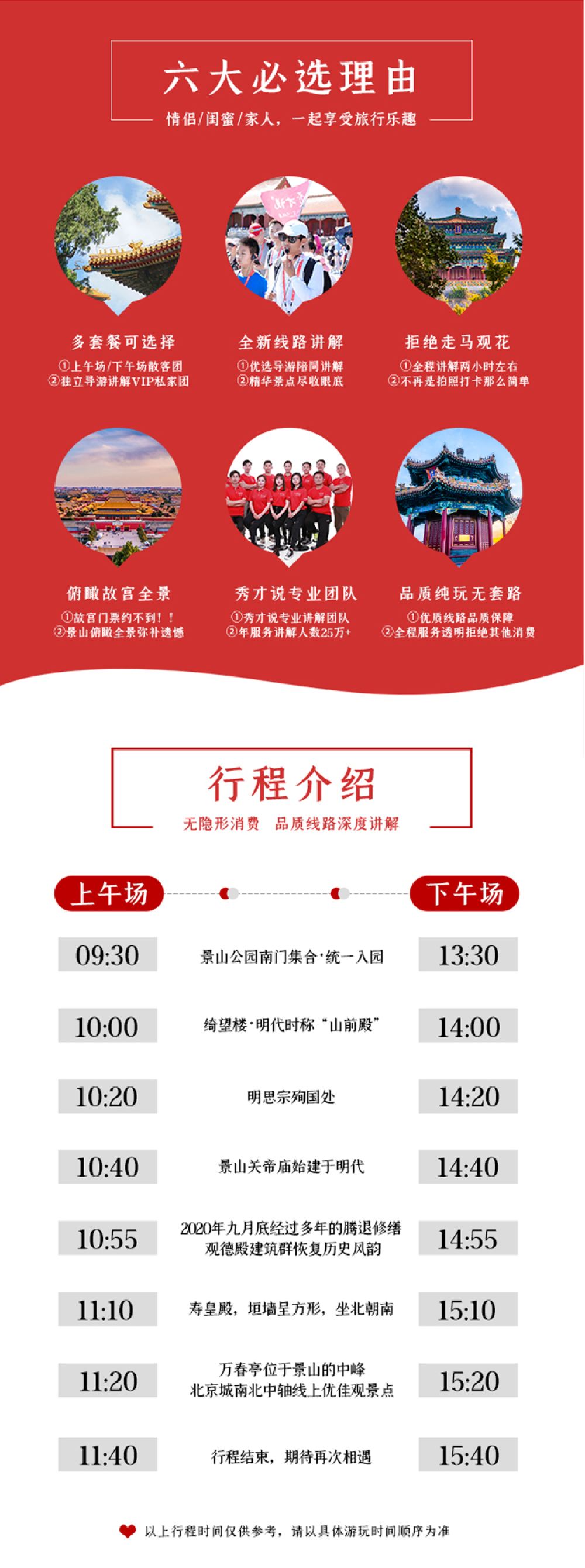 景山公园深度游【秀才说带您俯瞰故宫全景 一览京城轴线】【【多套餐可选择】全新线路,上午场下午场散客团/独立私家团任您选】