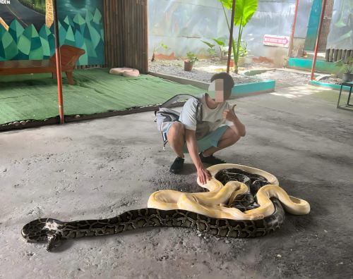 ▲ 前往蝴蝶园,(小型动物园),任意拍照(记得错位拍照);(有网纹蟒,黄金蟒,鹦鹉等)