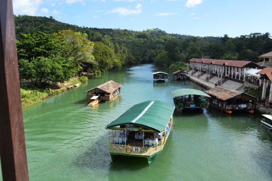 ▲ 前往罗博河,吃菲律宾游船特色,(观看当地竹竿舞)船上有主唱调节气氛,游览时间为1小时左右,(罗博河山上有空中滑索,为自费项目,门票为750P/人)