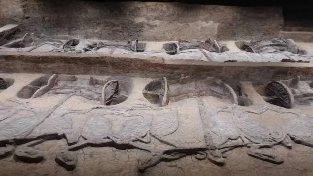 ▲ 楚王车马阵为春秋战国车马殉葬群,43车164马阵容震撼,体现楚国军事强权,堪称"中国楚车马阵",是楚文化辉煌见证。