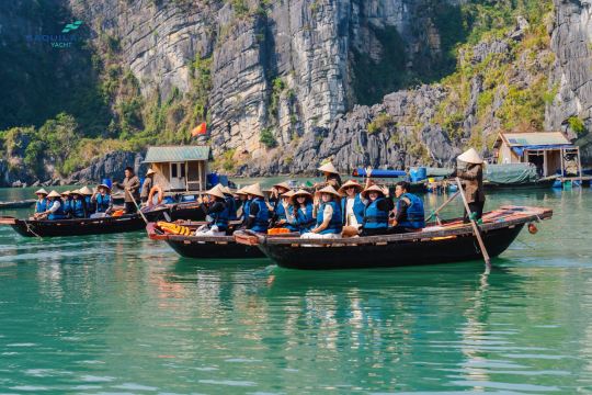 游船将前往参观翁翁渔村文化区。沿途,游客将享用茶点,欣赏雄伟的白寿山和下龙湾的著名岛屿,如翁岛、马奎岛、荣岛和安岛。