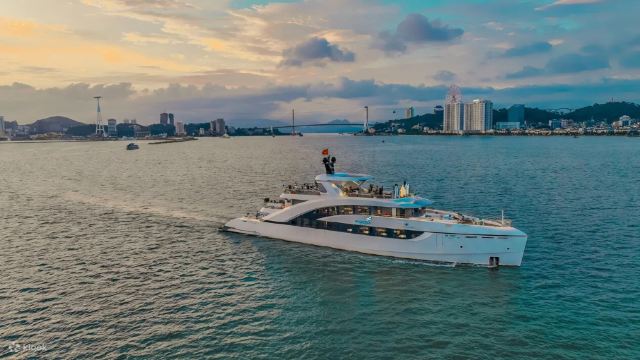 客人将在下龙国际客运港办理登船手续。之后,您将被引导至游轮,享用迎宾饮品并安顿下来。随后,游轮将离开港口,驶向各个观光区域。
