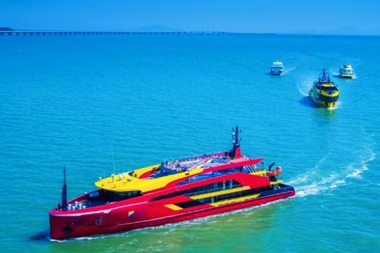 ▲ 豪华游轮海上观港珠澳大桥+桥底穿过大桥+日月贝+珠海渔女一天游