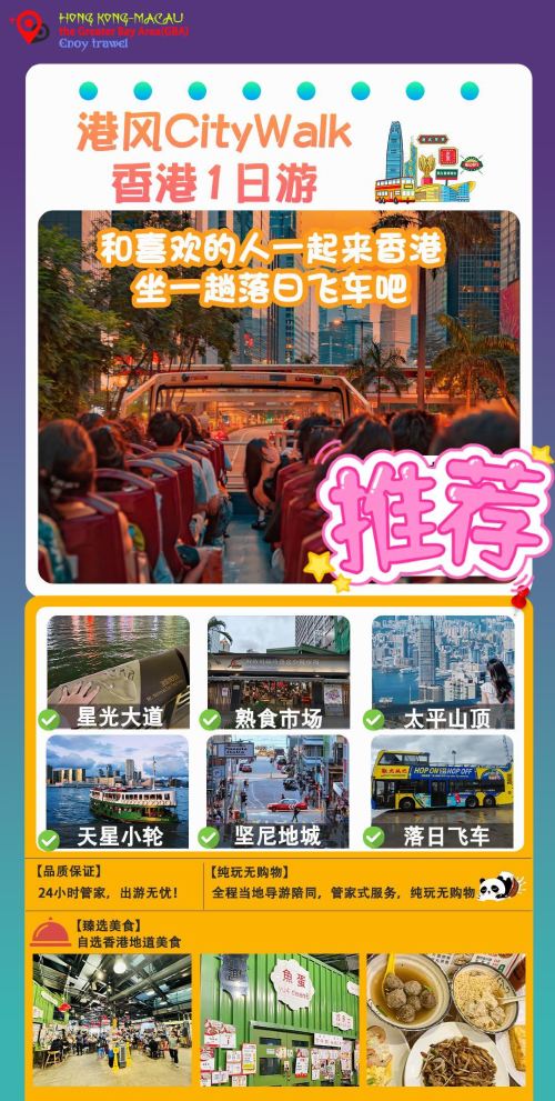 乘落日飞车丨中国香港地道港风纯玩一日丨廉政公署+上网卡+午餐【午餐品尝海防道熟食街市-打卡超40年历史网红餐厅!】