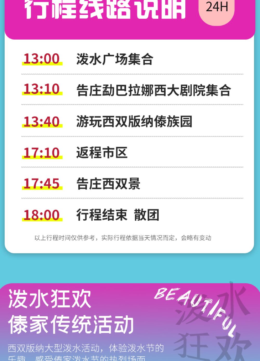 西双版纳傣族园一日游【睡醒晚出发丨直达景区丨泼水狂欢】【晚出发,专业经营纯玩,景区直通车,提高体验度,拒绝拥挤人多,不舒适等情况;】