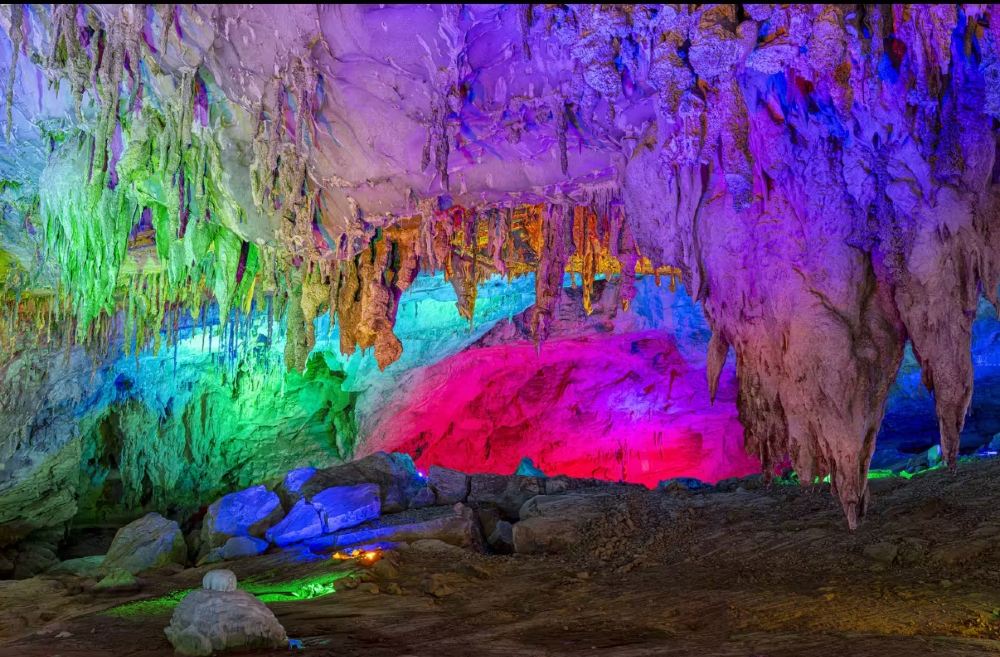 ▲ 百魔洞为典型的喀斯特地貌,兼具溶洞、地下河、天坑等多种喀斯特地貌形态,洞内遍布石笋、石柱、石钟乳。洞内有大肚笑佛、天马行空等景观。