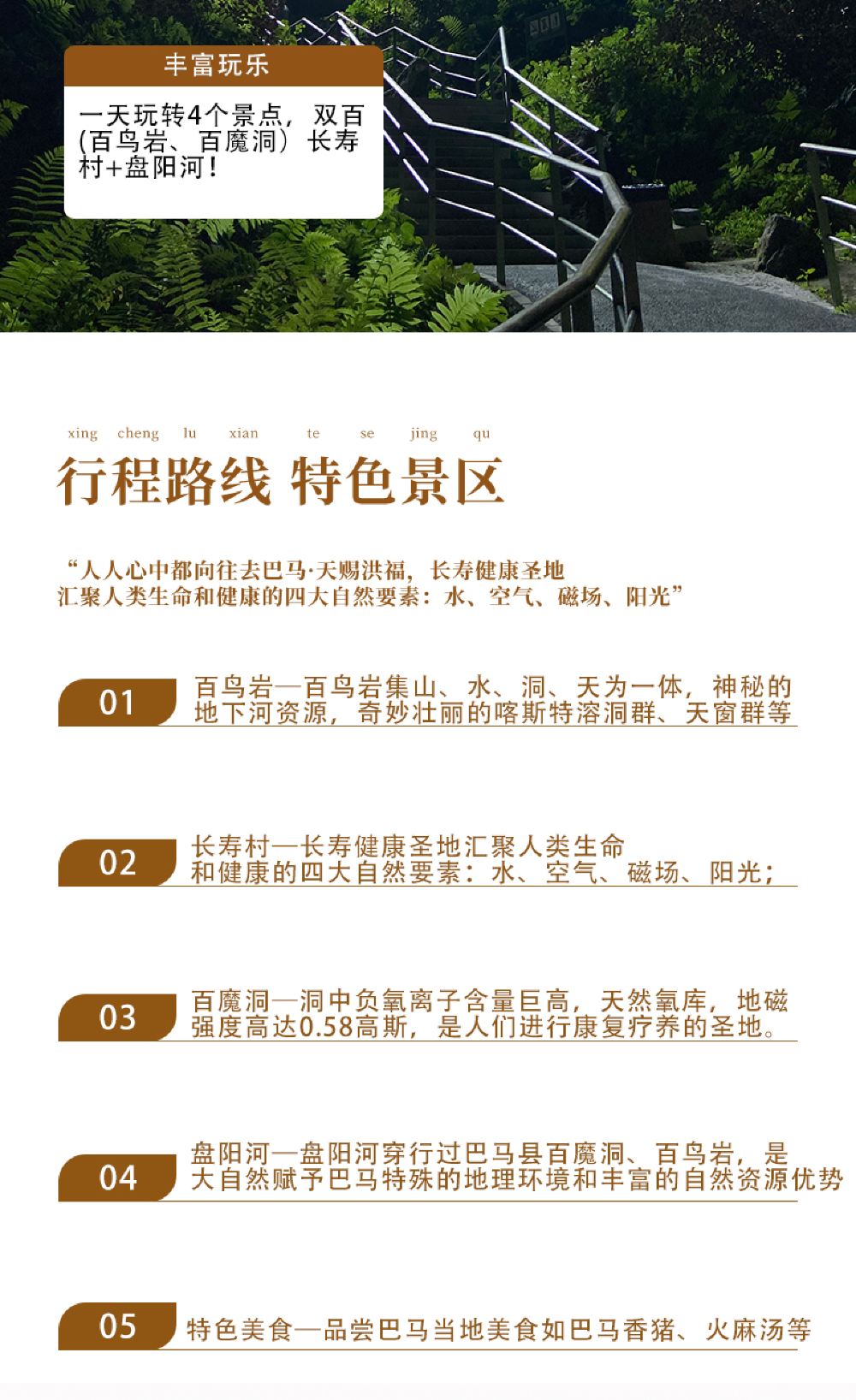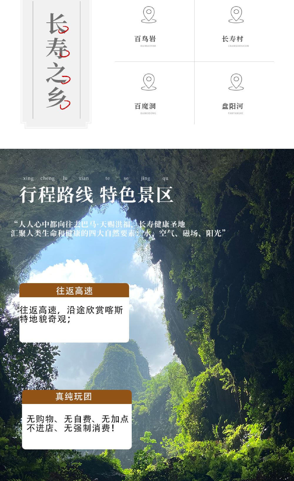 【私家团上门接送】巴马百鸟岩+长寿村+百魔洞+盘阳河一日游【[真纯玩团]无购物、无自费、不进购物店、无强制消费;】