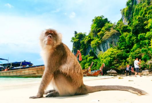 乘船观光,猴子会攻击游客,无法登岛。水位较高时,沙滩会消失。