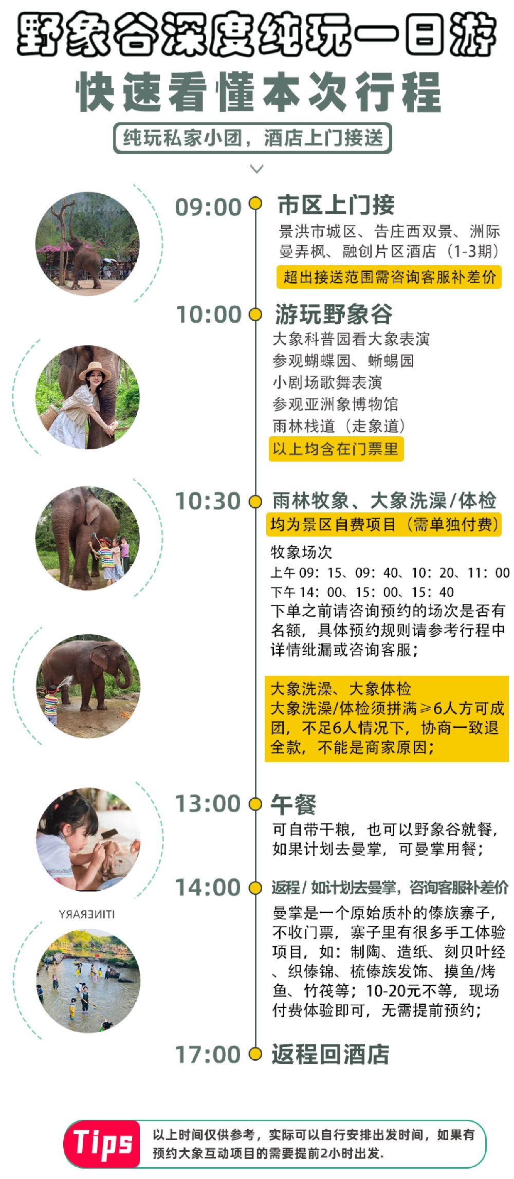 (2)野象谷门票、索道、雨林牧象、大象洗澡(铲屎官)、大象医生(体检)均为自费项目,需要单独付费;