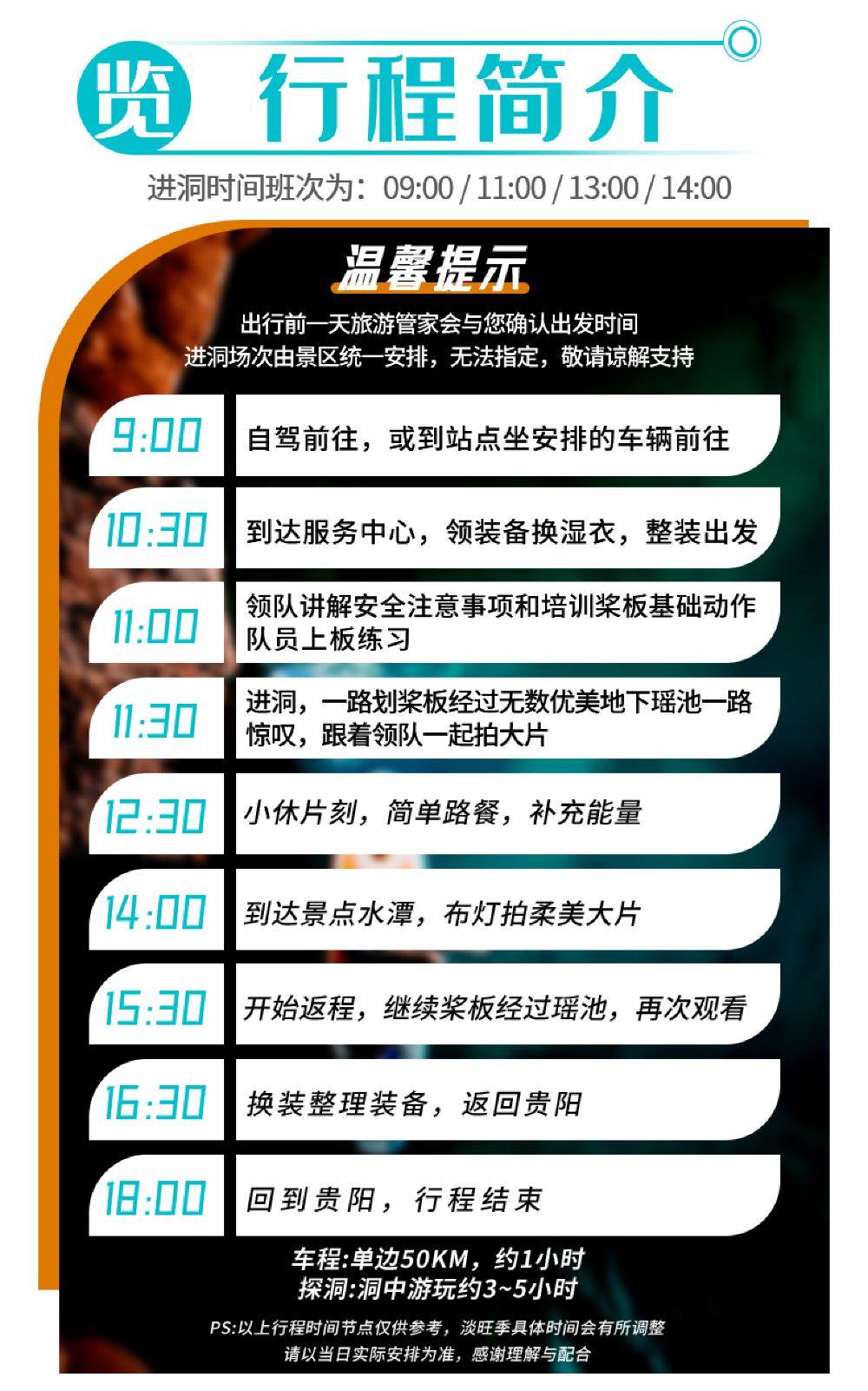 4、户外探洞活动不同于传统旅游,具有一定的危险性,要求参与者身体健康、无重大疾病史、非孕妇、无传染性疾病等,因此参加者须对自己的安全负责,对自身情况和活动要求做好充分评估,并充分告知客服自身身体状况,查看风险告知书,签署免责声明;如代他人报名请务必核实其情况;未成年人必须有监护人陪同方可参加活动,并有监护人对其负责。