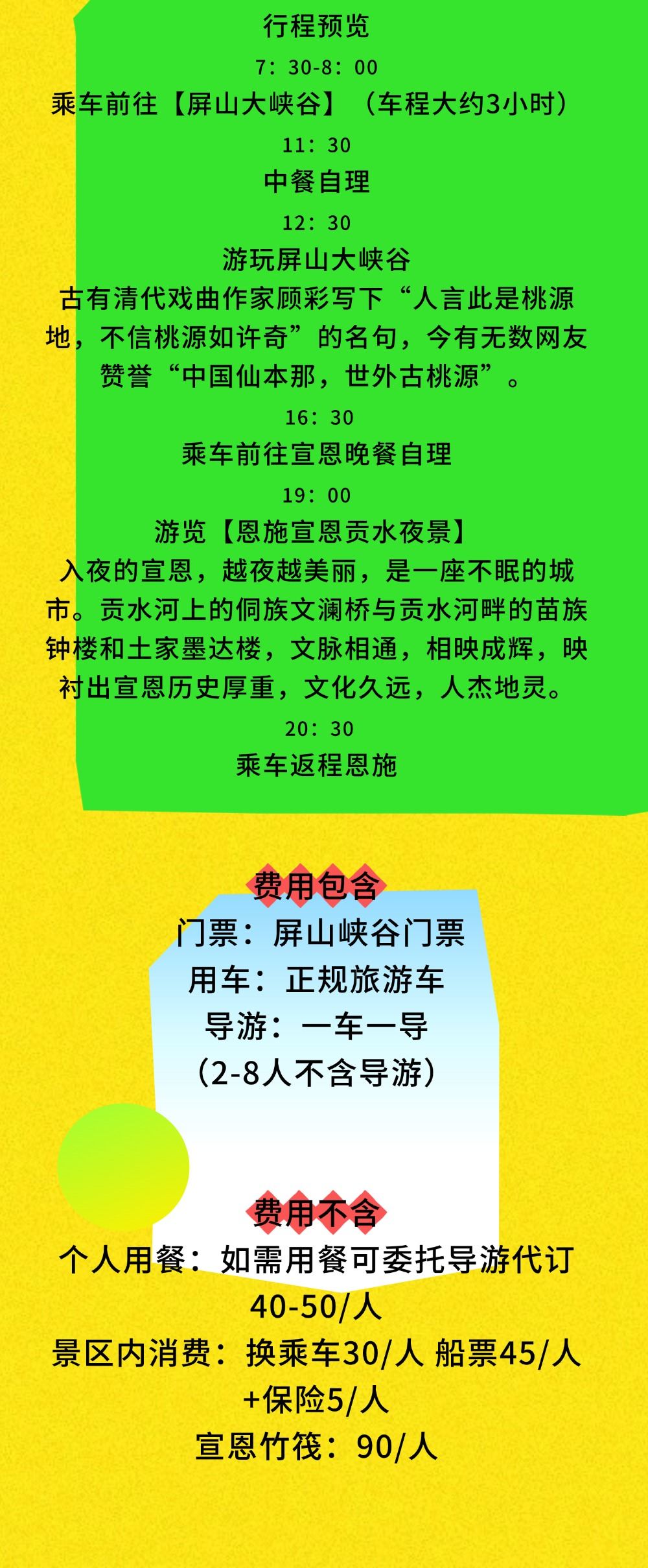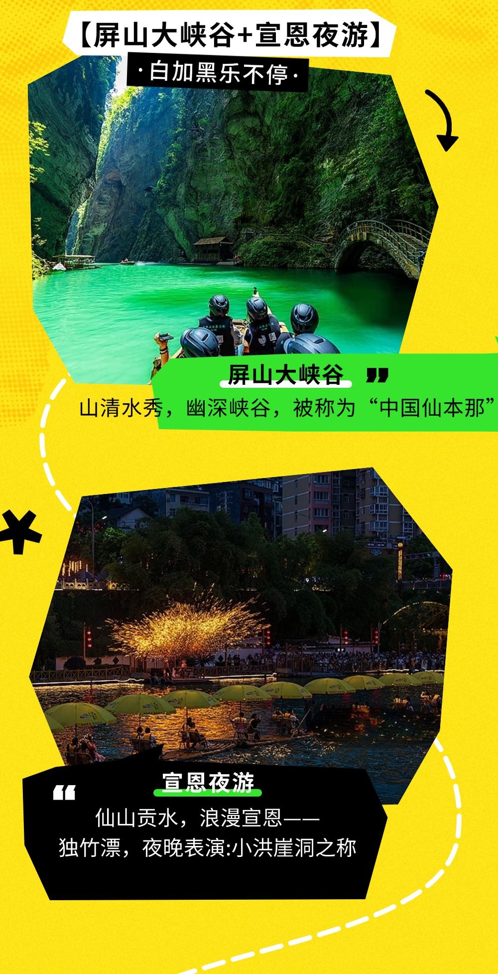 屏山大峡谷+夜游宣恩一日游【可选小型中型团;市区免费上门接】【【灵活自由】无购物,游玩观光团】