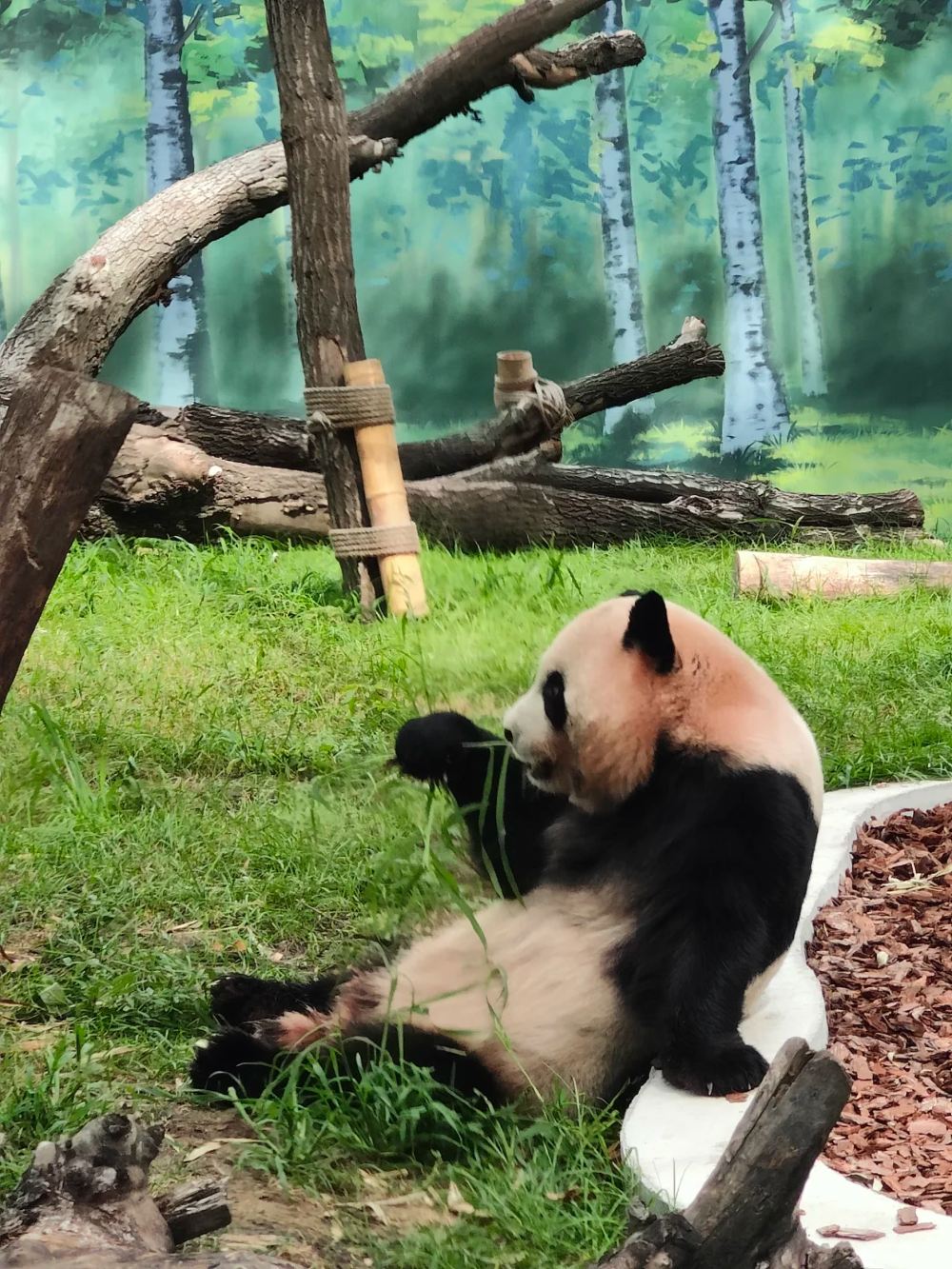 ▲ 这只趴在草地上啃竹子的大熊猫,是太阳岛的 “芝士” 或 “芝麻”—— 园区依托自然草地与林木打造活动场,搭配缤纷花卉矩阵,让熊猫能像在原生境中一样自在休憩。软萌的姿态搭配清新的自然背景,随手一拍都是旅行中可爱的纪念画面。